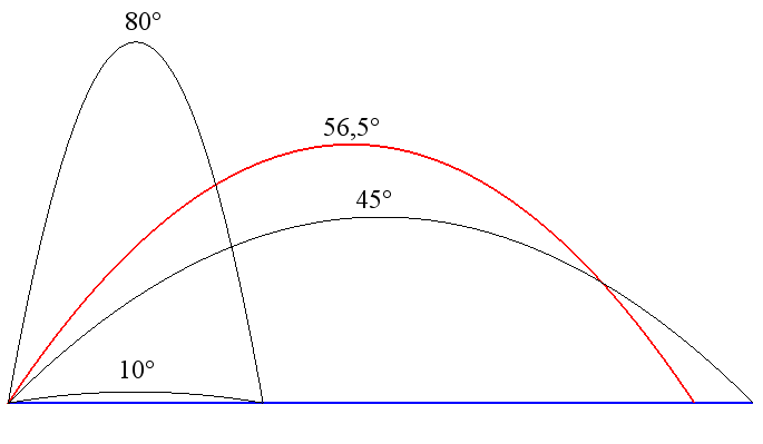 on the ground : Height reached : Length of the trajectory : Opposite, view of different shots depending on the starting angle. |