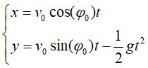 | (Linear) differential equation of motion: Cartesian parametrization: (initial condition M(0) = 0) with Cartesian equation: Transcendental curve (as opposed to the parabola). |