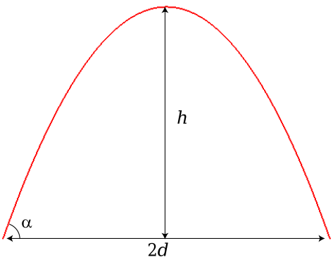 Equation d'un tir parabolique : Équation de la parabole de sûreté : avec Comme il se doit, le point de tir est au foyer de la parabole de sûreté. Distance de tir : Hauteur du tir : Longueur du tir : |