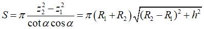 | Volume of the trunc of cone limited by the planes Area : |