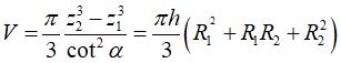 Volume du tronc de cône limité par les plans Aire de ce tronc de cône : |