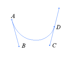 Bezier curves are used in drawing software such as Illustrator, with the tool "pen tool"; on the left, the cubic Bezier curve with ABCD as control polygon was traced using this tool. |