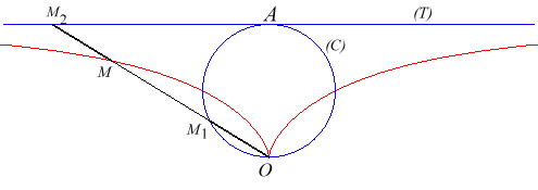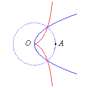 | - the inverse of a parabola with respect to its vertex (here, the parabola with vertex O and focus A, the circle of inversion being the circle with centre O passing by A)). |