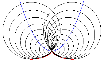 | .. and therfore also the envelope of circles, centered on a parabola, and passing through its vertex. |