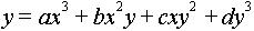 green: acnodal cubic blue: elliptic cubic with an infinite branch yellow: crunodal cubic magenta: cuspidal cubic |