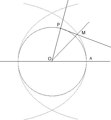 | The construction opposite shows the property of trisection: the angle MOP is the third of AOP. |