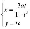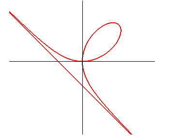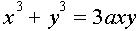 Cartesian equation: Polar equation: Cartesian parametrization: Rational cubic with a double point. The area of the loop is equal to that of the domain located between the curve and its asymptote (of equation x + y = –a); common value: 3a2/2. |