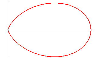| Given a circle (C) with diameter [O A], and a variable point P describing (C), the simple folium is the locus of the projection M on (D) of the projection Q on (OA) of P. |