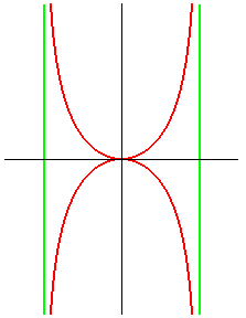 Polar equation: Cartesian equation: Cartesian parametrization : Rational quartic. Area of the domain between the curve and its two asymptotes: pa2. |