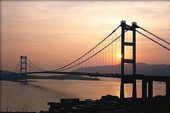 | The theoretical curve of the upper cable of a suspension bridge can be considered to be a parabola, as opposed to that of a free hanging wire, that assumes the shape of a catenary. | ![]() |