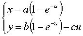 | (Linear) differential equation of motion: Cartesian parametrization: (initial condition M(0) = 0) with Cartesian equation: Transcendental curve (as opposed to the parabola). |