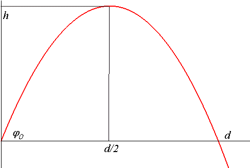 on the ground : Height reached : Length of the trajectory : Opposite, view of different shots depending on the starting angle. |