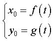 | Conditions imposed on the motion of the chaser, in Cartesian coordinates: Solution in a special case covering the generality: at the time t = 0, the chaser is at O and the fugitive on the axis Ox; if the motion of the fugitive is parametrized by (so there are two symmetric solutions about Oy) |