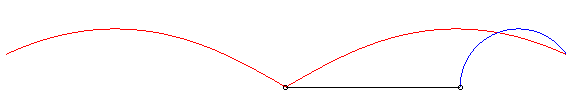 | For k = 1 (chaser and fugitive have the same speed), the motion of the chaser (2 possibilities in red opposite) is the symmetric or translated image of that of the fugitive. |