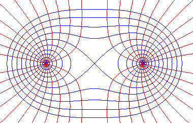 | Multipolar equation: Algebraic curve of degree 2n. The stelloids and the Cassinian curves are the inverse images of the coordinate lines by the complex function f defined by |