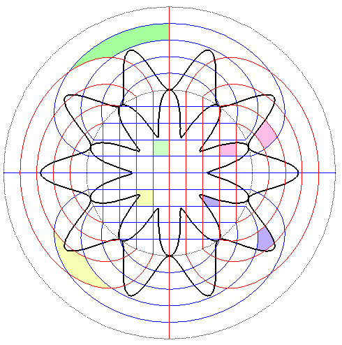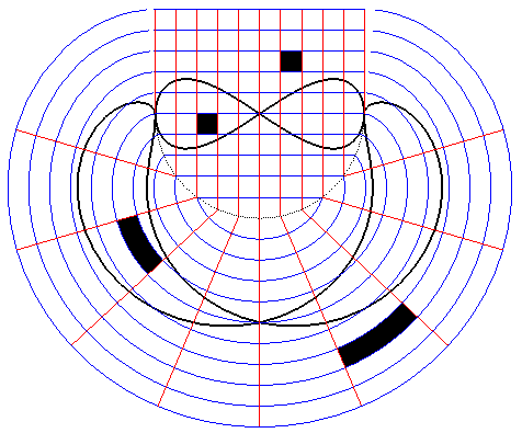 Le quadrillage courbe est le quadrillage réel dont l'image virtuelle est le quadrillage de départ. |