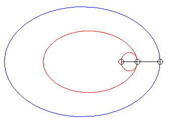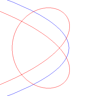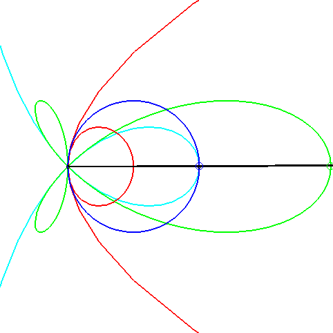 | Lorsque k = –1 (c'est à dire quand le module de la conchoïde est l'opposé du paramètre de la conique) on obtient des courbes à point double à tangentes confondues : | ![]() |
