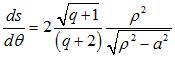 | Paramétrisation complexe : où a est le rayon du cercle de base et Paramétrisation cartésienne : Rayon vecteur : Abscisse curviligne donnée par Deux expressions intéressantes pour l'abscisse curviligne ; origine au début d’une arche (cas 2) ou en son milieu (cas 1) : 1) Angle tangentiel cartésien : Rayon de courbure : Équation intrinsèque 1 : ( Équation intrinsèque 2 : |