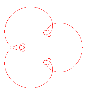 la courbe de paramétrisation complexe Dans ce cas rentrent les épi- et hypotrochoïdes ( Le cas plus général Ci-contre, la tritrochoïde obtenue pour |