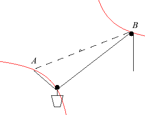 Interprétation mécanique * : une corde est attachée à une extrémité à un point fixe A, passe par une poulie B et est maintenue à la main à l'autre extrémité. Un seau est suspendu à la corde par une poulie entre A et B. Le seau décrit une portion d'hyperbole équilatère. * Voir Roguet p 161 (1842) |