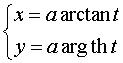 Équation cartésienne : y = a gd-1 (x/a) = ln (tan(x/2a + p/4)) = argsh(tan x/a) = argth(sin x/a) = signe(x).argch(sec(x/a)) , où gd-1 est la fonction de Gudermann inverse. Courbe transcendante. Paramétrisation cartésienne : Angle tangentiel cartésien : Abscisse curviligne : (intégrale pseudo-elliptique, d'où le nom de la courbe), où Courbure : |