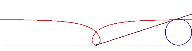 | La strophoïde droite est le lieu des points de contact entre une droite issue d'un point fixe F avec un cercle roulant sur une droite fixe passant par F. |