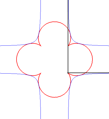 | Il se trouve que le cas n = 3 s'obtient comme orthoptique de la cruciforme : |