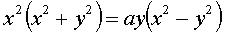 | Équation cartésienne : Équation polaire : Paramétrisation cartésienne : Paramétrisation cartésienne rationnelle : Quartique rationnelle avec point triple en O, et parabole asymptote : |