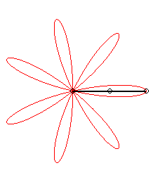 La trisectrice de Céva, la néphroïde de Freeth et la torpille sont des exemples de tritrochoïdes, ainsi que cet élégant quintifolium dissymétrique : |