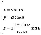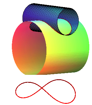 | Les enroulements des courbes d'isoénergie du pendule pesant sont les bicylindriques intersections de cylindres d'axes perpendiculaires. | ![]() |