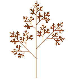 L'arbre suivant, à branches d'épaisseur variable, a été dénommé "arbre de Pythagore" car il est formé de copies de la figure classique illustrant le théorème de Pythagore :
