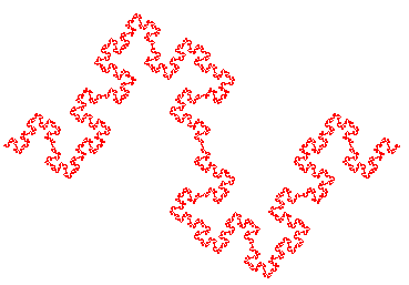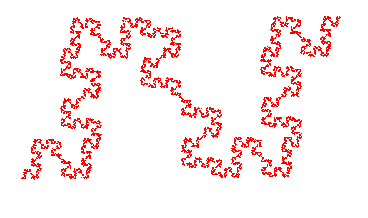 | Quatre saucisses de Minkowski dont les extrémités sont aux sommets d'un carré donnent l'île de Minkowski, parfois aussi dénommée "île de Koch quadratique". | ![]() |