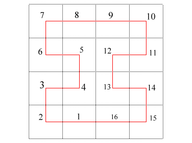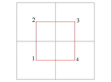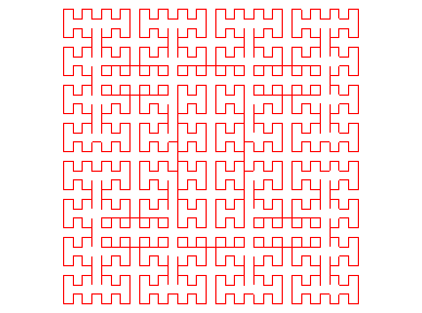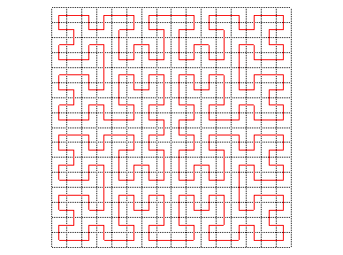 1) Partager [0, 1]2 en 4 "petits" carrés "égaux" ; numéroter chacun de ces carrés de sorte que deux carrés successifs se touchent par un côté, en commençant par le carré en bas à gauche, et terminant par le carré en bas à droite.