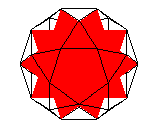 Ci-dessous vue d'une face triangulaire et d'une face pentagonale et d'une face décagonale insérées dans les arêtes de l'icosidodécaèdre.