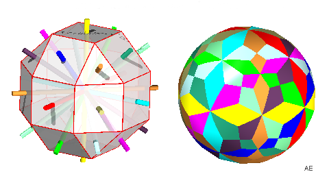 ![]() Faces : 60 (6 anneaux à 10 faces) Équivalence : hexacontaèdre trapézoïdal |