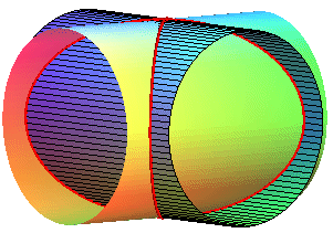 | Les solides de Steinmetz sont les intersections de cylindres de révolution pleins d'axes concourants et de même diamètre. |