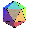 | octaèdre (régulier) | 34 {3,4} | 8 triangles | 6 de degré 4 | 12 | dual du cube | ![]() |