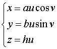 | Reduced equation: Sections by the plane z = k are ellipses with half-axes ak/h and bk/h. Developable ruled quadric. Cartesian parametrization: Parametrization for which the coordinate lines are the curvature lines (case Half major angle at the vertex: Half minor angle at the vertex: Volume of the solid between the planes z=0 and