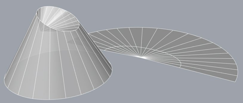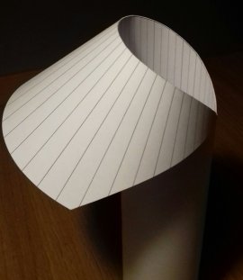 Example: if the fold is flat, the folded portion is the sheet symmetrical with respect to the plane thereof. Opposite, case of a cone and of a parabolic cylinder. | ![]() |