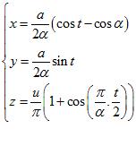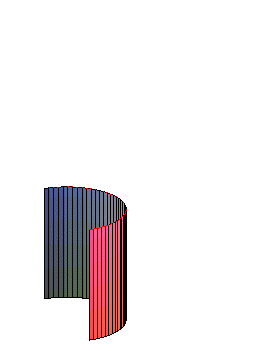Mathematical modeling of the winding of the cylinder. The generatrix of the folded part here have a constant length, and do not model the rectangular paper sheet. Note that at the midpoint, the fold is flat, and therefore the folded part is the symmetrical half-cylinder. Parametrization of the cylindrical part : |