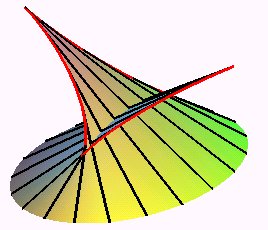 (in black the slope lines, in red, the cuspidal edge) |