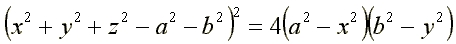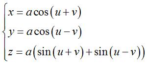 | Paramétrisation cartésienne : Équation cartésienne : Équation cylindrique : Surface quartique. Aire : |
