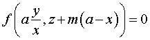 cas droit : Équation cartésienne du conoïde d'axe Oz, de plan directeur z = mx et de directrice la courbe (C) d'équation f(y, z) = 0 dans le plan x = a : Paramétrisation cartésienne du conoïde