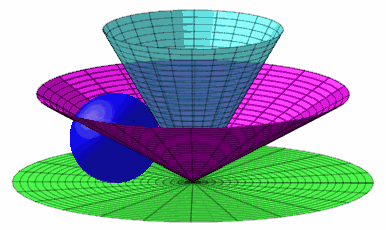 ...un hyperboloïde et un plan lorsque les sphères sont tangentes extérieurement : |