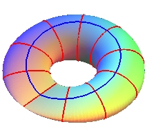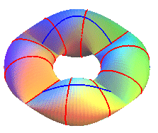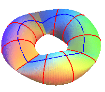 Cas k = 1 : surface orientable la courbe bleue est une ellipse |