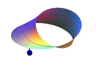 Par exemple, le ruban "normal" ci-contre est orientable, alors que le ruban de Möbius ne l'est pas. |